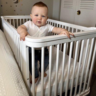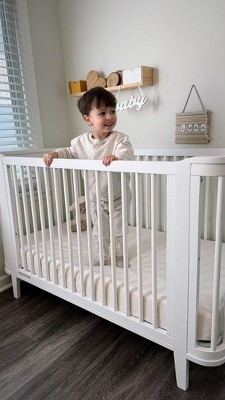 - ADJUSTABLE HEIGHT: Adjustable height mattress support with 3 convenient positions to grow with your baby | ACCESS RAIL DIMENSIONS: From Floor: 34.5"; From Top Mattress Support Position: 16.25"; From Bottom Mattress Support Position: 26.5"
