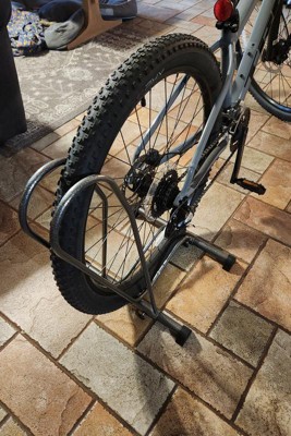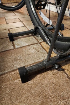 Purchased this stand to use in my apartment to hold up my bike. The stand is sturdy enough to keep my bike upright without worrying it may tip over.I also like that the rubber feet do not mark up the wood floors. Quality product.