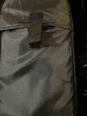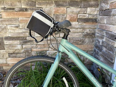 This bike bag is great overall and can hold a lot of stuff including a large water bottle with room to spare. Because of the brake lines, it doesn't lay flat against the handlebars but when holding some weight it might be a little closer fit. It's made to also be able to attach to a rear gear rack with the long velcro straps underneath. I don't have a rear rack and so the straps are useless to me. It would be nice it they were removable because they just hang there under the bag when not in use. The phone pouch is roomy and easy to get your phone into and out of and seems like it would definitely protect your phone from rain. You can text through the clear cover but it's not tight fitting enough to the phone face to be super responsive to touch, so you probably wouldn't use it much. But it's great for viewing maps or ride stats on the go. One feature that would be a nice addition is a small carrying handle so that once you reach a destination, you could remove the bag and easily take it with you.