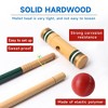 - Material and Size: Hardwood handle (36" L x 1" Dia); Thailand oakwood mallet (9.25" L x 2" Dia); polymer ball (3.5" Dia); hardwood stake (24" L).