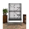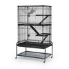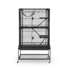 Prevue Pet Products Deluxe Critter Cage 484 is a safe and spacious home for a wide variety of small animals. Exceptional engineering makes our critter cage easy to assemble and provides a paw friendly design - no gaps or pinch points! Lightweight channel construction is heavy duty with rails, clips and alignment tabs to keep cage parts aligned, strong and sturdy. Cage comes complete with five shelves with twist knob closure, three ramps and a super soft plush hammock. Pet parents can comfortably access the cage interior through two large entry points, cage doors close easily and securely with our simple two-finger locking mechanism. Doors swing open wide providing full interior cage access for interacting with your pet or cleaning. The removable grille and tray make this cage easy to clean and are held in place with a windbell lock. A solid fit into the cage base provides extra stability while metal and hard rubber casters allow you to easily move the cage and lock into place as needed. Use the built in shelf to store extra toys or treats. Expertly engineered in the USA, all Prevue cages undergo independent lab testing to conform to the highest levels of pet safety. Suitable for small animals, ferrets, sugar gliders, rats, chinchillas, hedgehogs, tortoises, lizards, chameleons, iguanas and more, our Deluxe Critter Cage measures 37" long, 23 1/8" wide and 63 3/8" high (including the stand) with 7/16" wire spacing. Replacement platforms and ramps available separately.