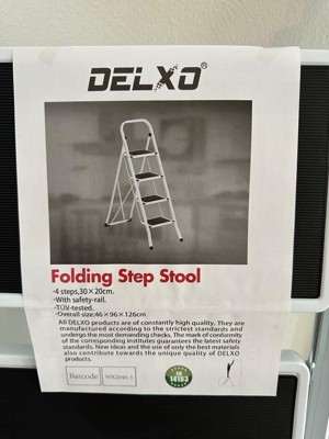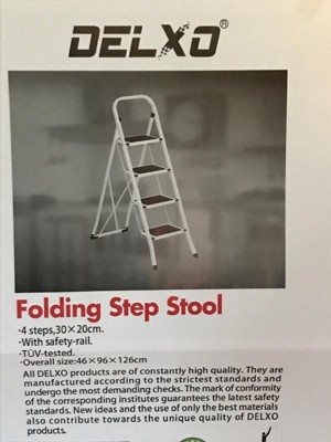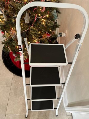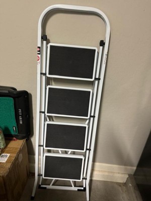 Delxo Alloy Steel Folding 4 Step Stool Portable Ladder with Hand Grip, White