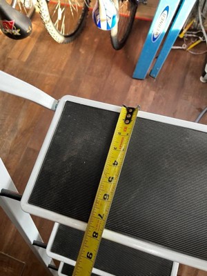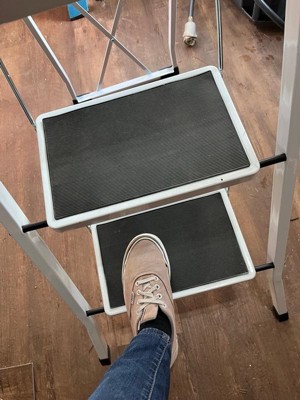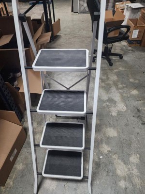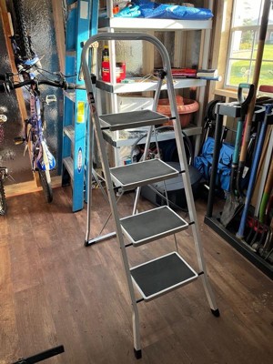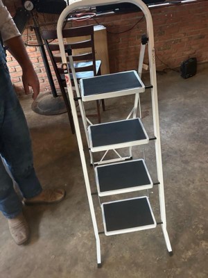 [This review was collected as part of a promotion.] I took this to my employees at my company to use instead of our ladder on wheels. It seems to be great with the non slip steps. And we love the 4 steps. The only reason it got 4 stars was because it is not super sturdy. I'd like to see the metal be a little thicker! Otherwise, it's a great ladder 🪜 for moving small objects.