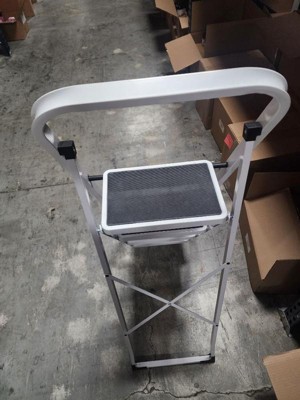 [This review was collected as part of a promotion.] This folding step ladder is great. It is lightweight, but very sturdy. I felt comfortable using it to reach the top shelf of my pantry. The curved top makes a nice handle to hold onto for steadiness if needed. It folds up and is very easy to store.