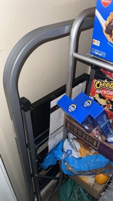 [This review was collected as part of a promotion.] It is sturdy and easy for storage. To me it’s a good value, light weight ladder that I can move around the house to change light bulbs, get stuff in kitchen cabinets.