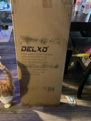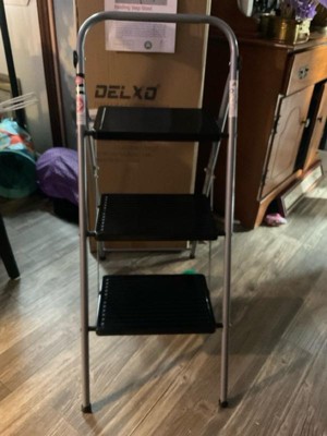 Delxo Portable Collapsible Lightweight Alloy Steel 3-Step Stool Stepladder with Wide Pedal, Hand Grip and Locking Mechanism, Gray