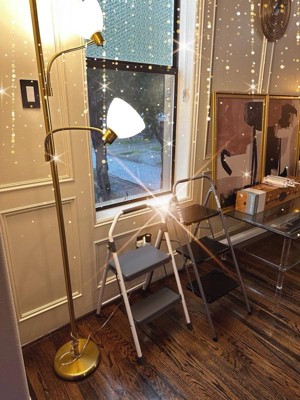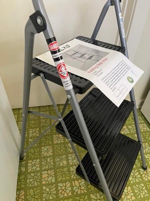 [This review was collected as part of a promotion.] Sturdy step ladder made of metal that is lightweight enough for every day use. Sleek design making it easy to fit in small storage areas for easy and quick use. Nice sleek design with a safety hook to ensure ladder does not become disassembled while in use. I would definitely look into this brand again, when purchasing an item of this sort however, there were two things that I disliked about the stepladder. The first being that the metal steps while very sturdy are slippery with house slippers. For this reason, I will most likely use this stepladder in my garage when I know I will have on street shoes. My other complaint was that you manually have to pull apart the ladder, as with another step ladder I own I push a button for it to easily open up. This step ladder I needed to use two hands versus one hand with another brand I own.