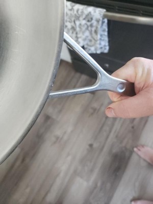 - Stay-cool, shot-blasted 18/10 stainless-steel handles are securely welded and extremely hygienic; oversize loop handles (on Dutch oven) allow for easy maneuvering