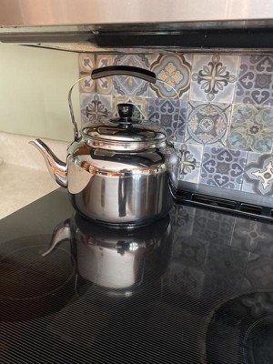 4.2-qt capacity tea kettle. Contructed of 18/10 stainless steel.