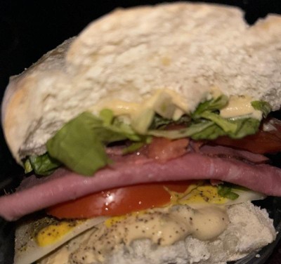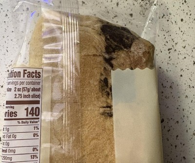 I cut the bread in half and a bug was baked inside. I should've taken a picture and called corporate but I was so grossed out that I threw it away.