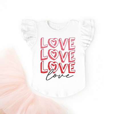 Product Name: Demin Heart Print - Flutter Sleeve Graphic T-Shirt