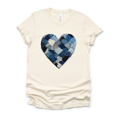 Demin Heart Print - Women's Ringer Graphic T-Shirt