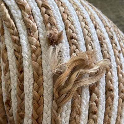 Bought for a foot rest/seat in my nursery. Looks exactly as pictured. Sturdy, doesn't feel like it's going to deflate like most poufs do quickly. The material is a bit more rough than I was hoping for but I think that adds to the sturdiness.