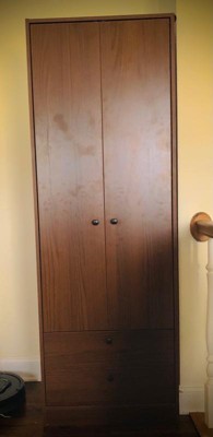 [This review was collected as part of a promotion.] I love this 2 drawer wardrobe. It was very easy to assemble. My wife has taken over the closet and I need someplace for my clothes. This wardrobe is perfect. I am able to hang my favorite and important clothing up. I also love the drawers for storage. I have clothes in one drawer and the other drawer has my watches.
