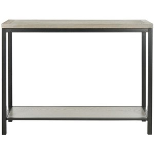 With its understated transitional look, the clean lined Dennis console is the ideal piece to refresh a room. A transitional take on the industrial chic movement, it is built to last from ash grey solid elm with Parsons style metal legs and frame. Perfect in a hallway or behind a sofa, the Dennis console also looks great in pairs against a long wall.