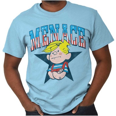Stay on trend when you wear our printed tee shirt. The graphic print shows off you love Dennis the Menace. This is a classic with a twist. Details