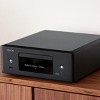All-in-One Hi-Fi SystemThe latest generation mini hi-fi system from Denon delivers superb sound from an elegant and compact package. It offers a built-in radio tuner and CD player plus HDMI ARC for simple TV connection and music streaming via HEOS Built-in. Listen to high-de?nition music from NAS (Network Attached Storage) and your computer via Wi-Fi ethernet AirPlay 2 Bluetooth and USB. With added features such as a phono input an audio pre- out dedicated subwoofer output high-quality speaker terminals and Quick Select buttons its the perfect audio hub for a small living space.