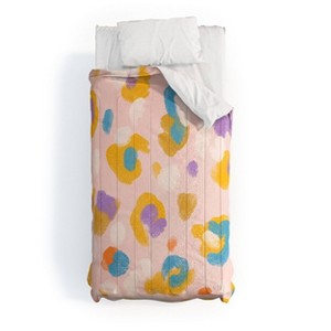Deny Designs 3pc Full/Queen SunLee Spring Leopard Comforter Bedding Set Pink: Reversible Abstract Polyester, Lightweight