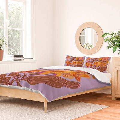 Deny Designs 3pc Full/Queen Valentina Ramos Oranges and Flowers Duvet Cover and Pillow Sham Set: 300 Thread Count, Woven Polyester