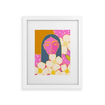 Deny Designs Maritza Lisa Abstract Pink Flowers with Yellow Framed Wall Art Print