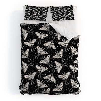 Deny Designs Full/Queen Avenie Luna Moth Black and Cream Comforter and Pillow Sham Black