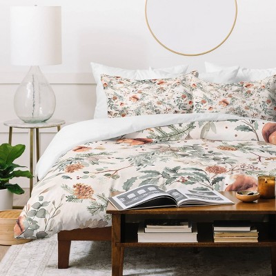 Deny Designs Full/Queen Avenie Yuletide Bright Duvet Cover and Pillow Sham Green