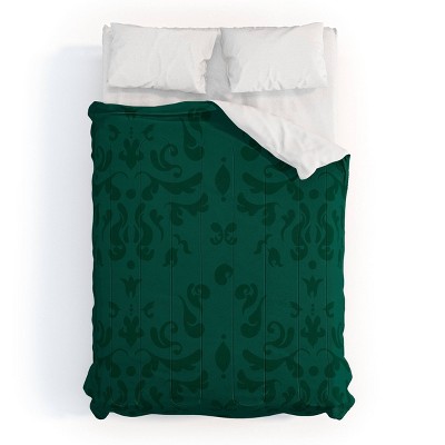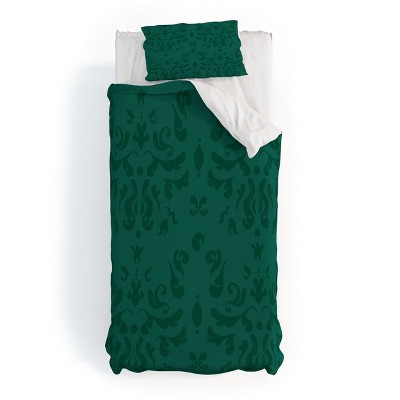 Deny Designs Full/Queen Camilla Foss Modern Damask Green Duvet Cover and Pillow Sham Green