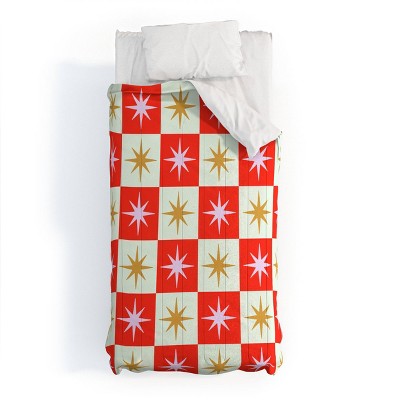 Deny Designs Full/Queen Galaxy Eyes Star Check Festive Duvet Cover and Pillow Sham Cream