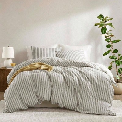 Deny Designs Little Arrow Design Co Bamboo Stripes Neutral Duvet Cover Bedding Set Beige