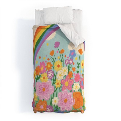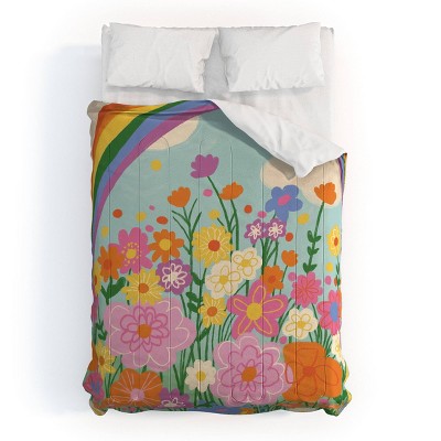 Deny Designs Gigi Rosado Happy Rainbow Duvet Cover and Pillow Sham Set Blue