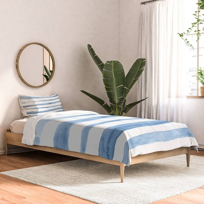 Deny Designs Kelly Haines Blue Watercolor Stripes Queen/Full Duvet and Sham Set (2-3pc Set)