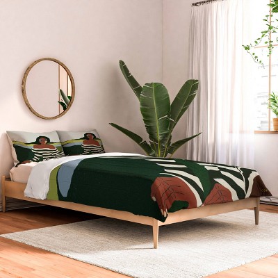 Deny Designs King Jenean Morrison Gingham Floral Comforter and Pillow Shams Green: Abstract Pattern, Year-Round Fabric Construction