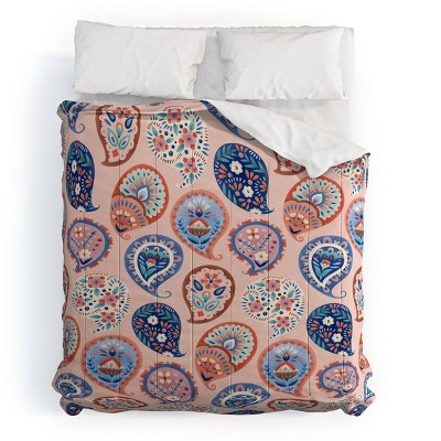 Deny Designs King Pimlada Phuapradit Floral Paisley Half Drop Duvet Cover and Pillow Sham Orange