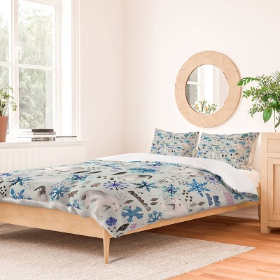Deny Designs King Kris Kivu Blue Moon Phases Watercolor Duvet Cover and Pillow Shams: Abstract Design, Machine Washable