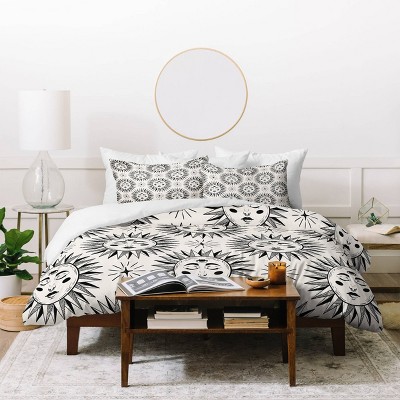 Deny Designs Queen Jenean Morrison Gingham Floral Duvet Cover and Pillow Shams Green: Abstract Pattern, Machine Washable