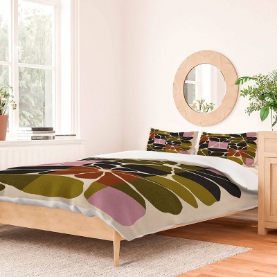 Deny Designs Twin/Twin Extra Long Angela Minca Abstract Monochrome Daisies Duvet Cover and Pillow Sham Set Beige: 300 Thread Count, Woven Polyester