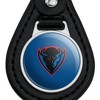 - QUALITY MATERIAL: Our durable round keychain is crafted from leather with a glossy resin-topped emblem featured design shown on one side. Approximately 1.5" (3.8cm) x 2.5" (6.4cm) in overall size, emblem is 1" (2.5cm)..