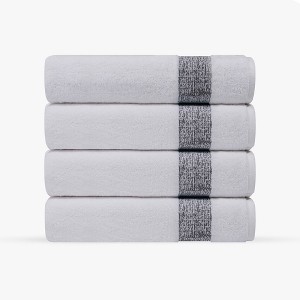 - Distinctive Textured Band: The towel features a unique textured band in a contrasting colors, adding a stylish and modern touch to its classic white design.