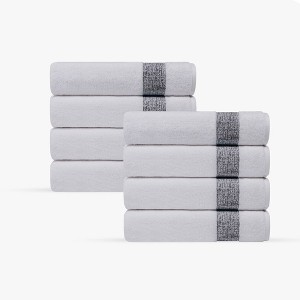 - Distinctive Textured Band: The towel features a unique textured band in a contrasting colors, adding a stylish and modern touch to its classic white design.