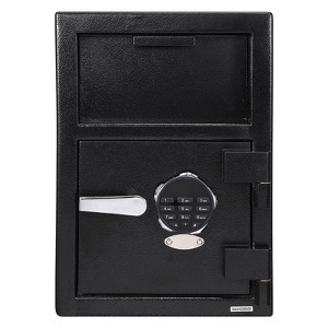 Depository Safe Fireproof, Electronic Drop Safe with Digital KeypadProduct Description:1. Commercial-Grade Security Cabinet: Designed for business environments, this depository safe features a robust, cabinet-style build for superior protection. Its compact internal dimensions are ideal for storing envelopes, cash slips, checks, and small packages, making it a perfect security solution for front desks in offices, retail spaces, and other professional settings.2. Enhanced Anti-Theft Design: Constructed from high-quality steel, this safe is built for durability and security. It features an anti-fishing design to prevent theft through the deposit slot and is equipped with a reinforced, pick-resistant door. The elegant black powder-coated finish not only resists daily wear and tear but also ensures long-lasting protection for your valuables.3. Advanced Digital Keypad Operation: Experience effortless and secure access with a large, backlit digital keypad, visible even in low-light conditions. The system supports extensive user management, allowing you to program up to 120 individual user codes, plus one master administrator code for comprehensive control and oversight.4. Convenient Front-Mounted Drop Slot: The secure front-facing deposit slot allows for quick and safe deposits of cash, documents, and checks without the need to open the main safe door. This streamlines the deposit process while maintaining a high level of security, minimizing exposure of the interior contents.5. Simple & Flexible Installation: With pre-drilled holes and included screws, installation is straightforward and versatile. The safe can be easily mounted under a counter, on a wall, to a floor, or placed on a shelf, providing flexible placement options to suit the layout of your home, office, or business.Specifications:? Capacity: 2.6 Cubic Feet? Lock Type: Electronic Combination Lock? Special Feature: Fireproof? Mounting Type: Under Counter, Wall, or Floor Mount? Material: Steel? Included Components: Depository Safe, Backup Keys? Item Weight: 83 Pounds