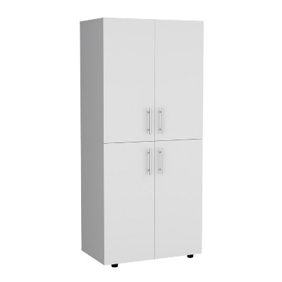 The Silo Armoire is an elegant and functional solution for organizing your clothes and accessories. Crafted from durable manufactured wood, this armoire ensures longevity. Available in two colors, black and white, you can choose the one that complements your style and decor. Measuring 70.9"H x 30.9"W x 19.0"D, the cabinet provides ample storage space. It features two double doors for easy access to clothing and accessories and two additional drawers to neatly organize your belongings. Additionally, the Silo Armoire is equipped with a hanging rod, facilitating the organization and accessibility of your hanging garments. Whether placed in your bedroom, dressing room, or any other room, this armoire combines style and functionality to keep your clothes organized and well-maintained.