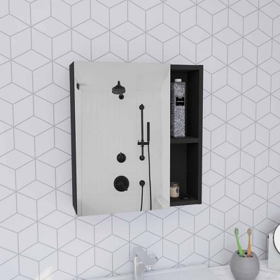 Kazan Medicine cabinet is designed with humidity-resistant manufactured wood. This cabinet is the perfect way to add extra storage to your bathroom without sacrificing any style; it is a great way to keep your bathroom organized and looking chic with its sleek modern design. With an ample mirror included in the single door cabinet (13,7''W X 18''H) and two external shelves (4,1''W X 7,9''h X 8,4''H) perfect for your little objects and an ample superior top(20,4'') is the perfect complement for your bathroom. Designed with elegant black wengue, light grey, and white manufactured wood finish.