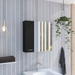Harbor Medicine Cabinet is the perfect way to add style and storage to your bathroom. This cabinet has a beautiful finish, making it resistant to wear and tear. Plus, its big mirror makes it easy to get ready in the morning. Perfect for all of your bathroom essentials for the four internal shelves (11,12''H X 10,5''HX 15,1''H X 6.6''H X 5,9''W X 15.8''W) It easily mounts to any wall and has a large storage capacity to accommodate everything you need. its witty size will add personality to your bathroom décor. Designed with elegant black wengue, light grey, and white manufactured wood finish.