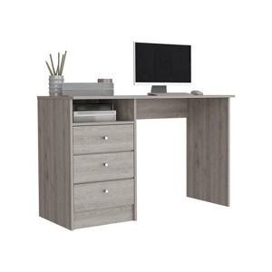 Nemocon 3-Drawer Modern Pedestal Desk: Elevate your home office with the stylish Nemocon desk, ideal for compact spaces. Featuring three spacious drawers (15.5" W x 5.9" H) and an open shelf for easy organization, this desk keeps your workspace clutter-free. Its sleek design in light gray, gray oak, and black wengue finishes complements any decor while maximizing functionality.