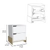 Here's the Haines Nightstand with 2-Drawers - the perfect addition to any bedroom! This stylish nightstand comes in various finishes, including white, white/macadamia, and black, making it easy to find the perfect match for your bedroom decor.