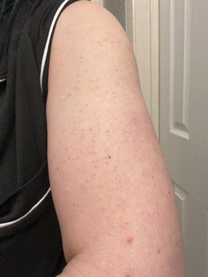 This exfoliating lotions works wonders. The exfoliating beads are small enough so it’s gentle for your skin but still gets off all the dead skin cells. I used this on my daughters arms and they are so much smoother then they used to be.