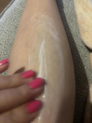 Amazingly smooth and soft is how my skin feels after using this and it smells good! This lotion is creamy and richly scented. It doesn’t leave the skin oily or slick, just moisturized. It’s not rough at all and has no “scrub” like feel.
