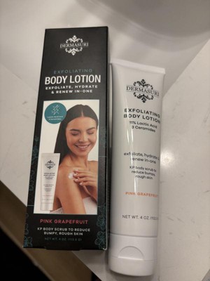Dermasuri Exfoliating Body Lotion - Grapefruit KP Bump Eraser Body Scrub - Rough and Bumpy Skin Lotion -Moisturizer for Body - 4 Ounces