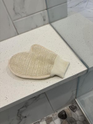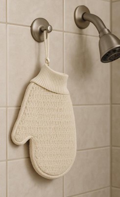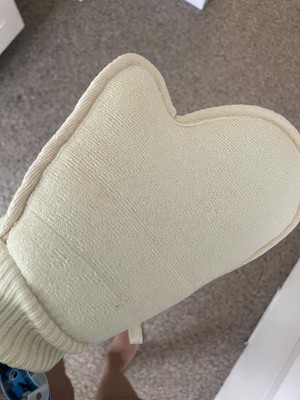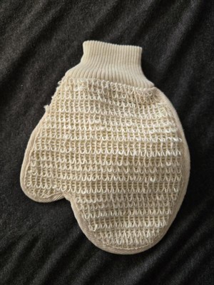 I love this exfoliating glove! It’s easy to slip on and use in the shower. It dries quickly hanging in the shower. It is annoying that the thumb is only for one hand but that’s minor. It’s a great product!