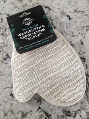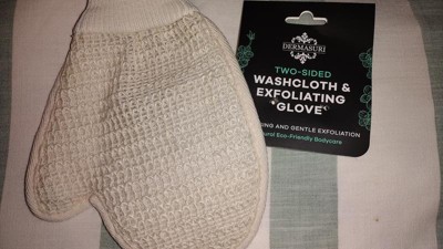 DERMASURI TWO-SIDED WASHCLOTH & EXFOLIATING GLOVE - Body Scrubber Duo - Exfoliating & Cleansing Loofa. Introducing our Double Sided Exfoliating Mitt: one side is designed for gentle exfoliation, while the other side functions as a soft washcloth. Crafted with high-quality materials, our exfoliating mitt provides a luxurious spa-like experience in the comfort of your own home for everyday use. The Dermasuri Two-Sided Washcloth & Exfoliating Glove is a versatile loofah and dry brushing body brush alternative designed to provide a spa-like exfoliation experience right at home. This loofah sponge and bath sponge combo works as a powerful loofah exfoliating body scrubber to remove dead skin, promoting smooth, radiant skin. Perfect for use as a shower loofah or shower sponge for body, this unique body loofah design is great for both men and women. Whether you're looking for a loofah for men, lufas for women, or a compact travel loofah, this loofah pack has you covered. Use it with your favorite body wash in the shower as a bath loofah or shower pouf to boost your skincare routine.